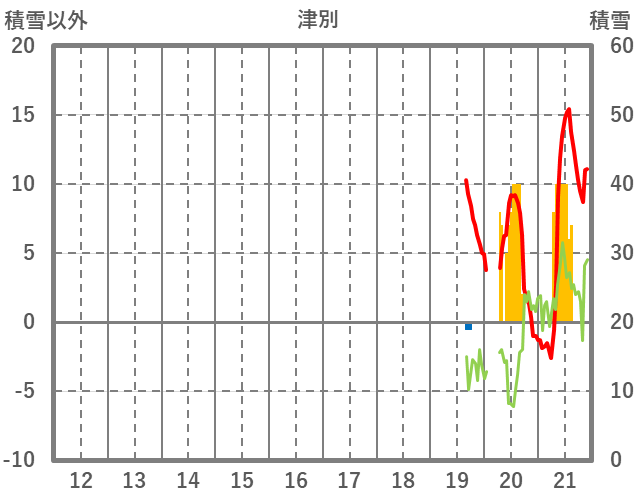 | 日 | 時 | 気温 | 降水 | 風向/風速 | 日照 | 積雪 | 降雪 |