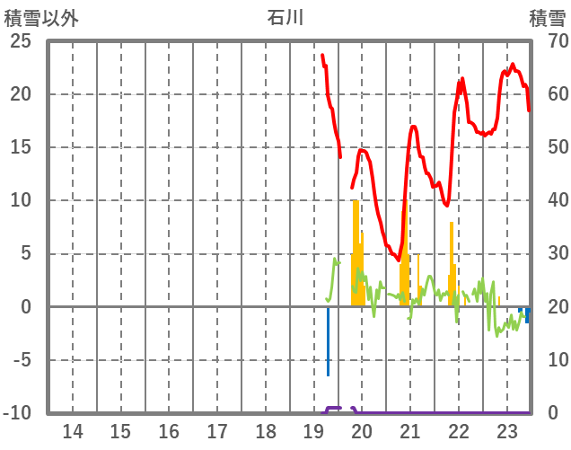 | 日 | 時 | 気温 | 降水 | 風向/風速 | 日照 | 積雪 | 降雪 |