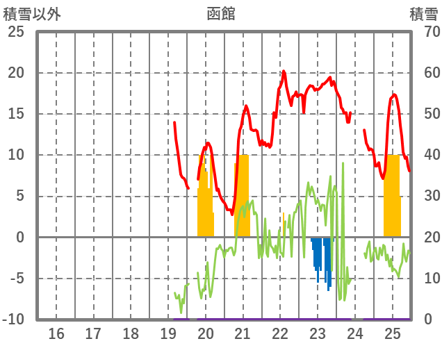 | 日 | 時 | 気温 | 降水 | 風向/風速 | 日照 | 積雪 | 降雪 |
