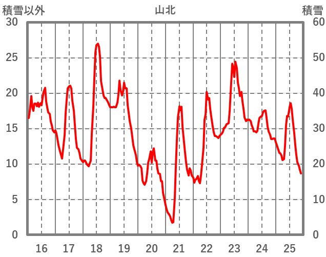 | 日 | 時 | 気温 | 降水 | 風向/風速 | 日照 | 積雪 | 降雪 |