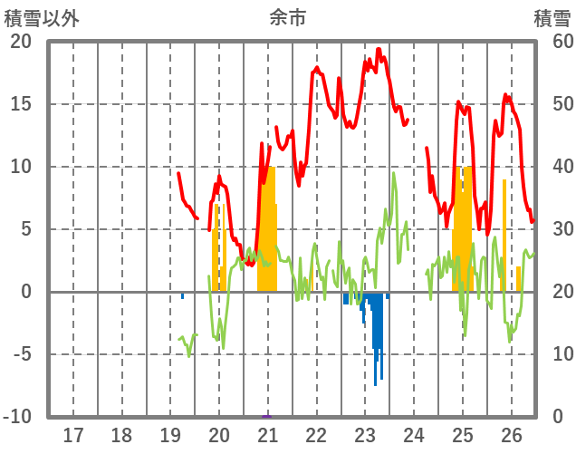 | 日 | 時 | 気温 | 降水 | 風向/風速 | 日照 | 積雪 | 降雪 |