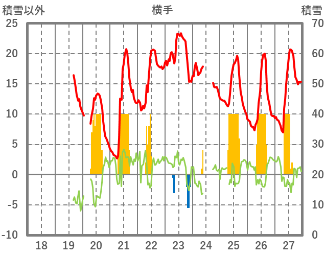 | 日 | 時 | 気温 | 降水 | 風向/風速 | 日照 | 積雪 | 降雪 |