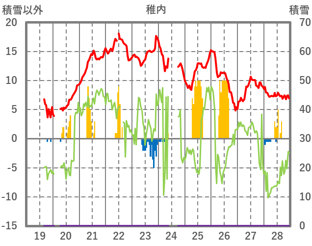 | 日 | 時 | 気温 | 降水 | 風向/風速 | 日照 | 積雪 | 降雪 |