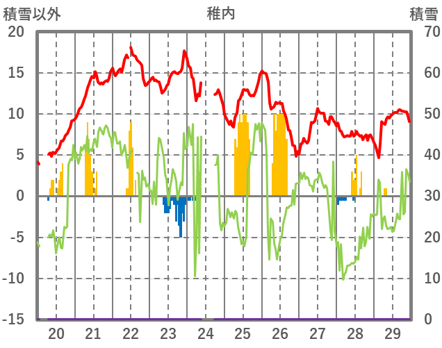 | 日 | 時 | 気温 | 降水 | 風向/風速 | 日照 | 積雪 | 降雪 |