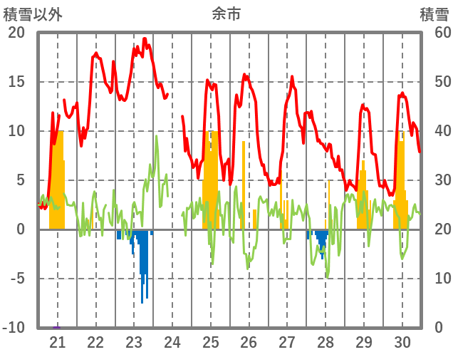 | 日 | 時 | 気温 | 降水 | 風向/風速 | 日照 | 積雪 | 降雪 |