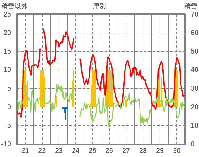 | 日 | 時 | 気温 | 降水 | 風向/風速 | 日照 | 積雪 | 降雪 |