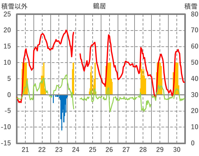 | 日 | 時 | 気温 | 降水 | 風向/風速 | 日照 | 積雪 | 降雪 |