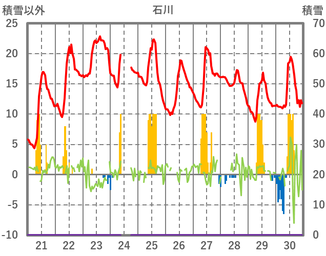 | 日 | 時 | 気温 | 降水 | 風向/風速 | 日照 | 積雪 | 降雪 |