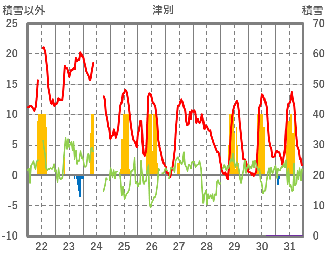 | 日 | 時 | 気温 | 降水 | 風向/風速 | 日照 | 積雪 | 降雪 |