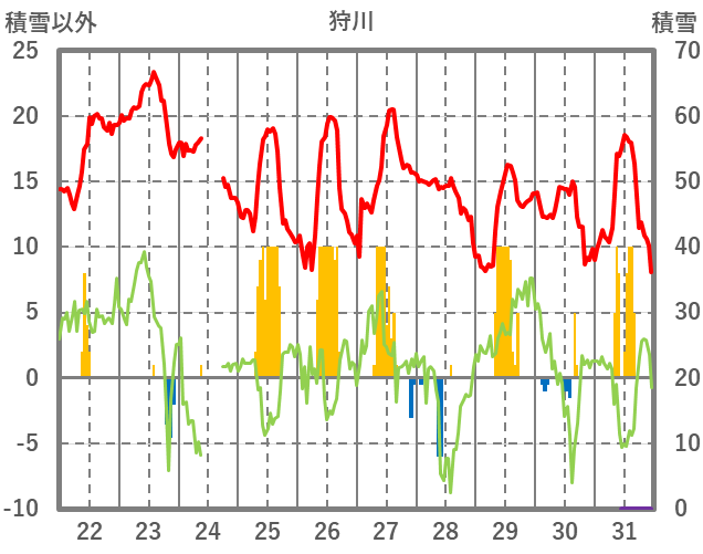 | 日 | 時 | 気温 | 降水 | 風向/風速 | 日照 | 積雪 | 降雪 |