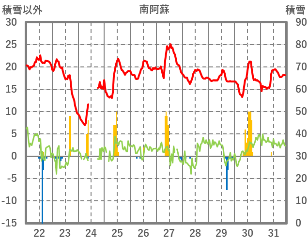 | 日 | 時 | 気温 | 降水 | 風向/風速 | 日照 | 積雪 | 降雪 |
