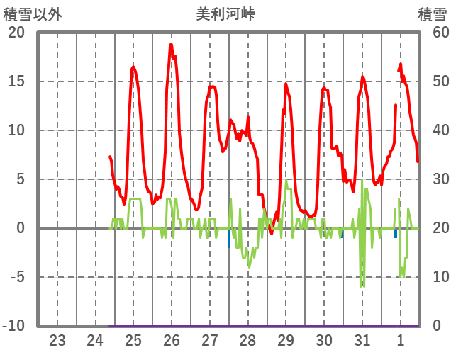 | 日 | 時 | 気温 | 降水 | 風向/風速 | 日照 | 積雪 | 降雪 |
