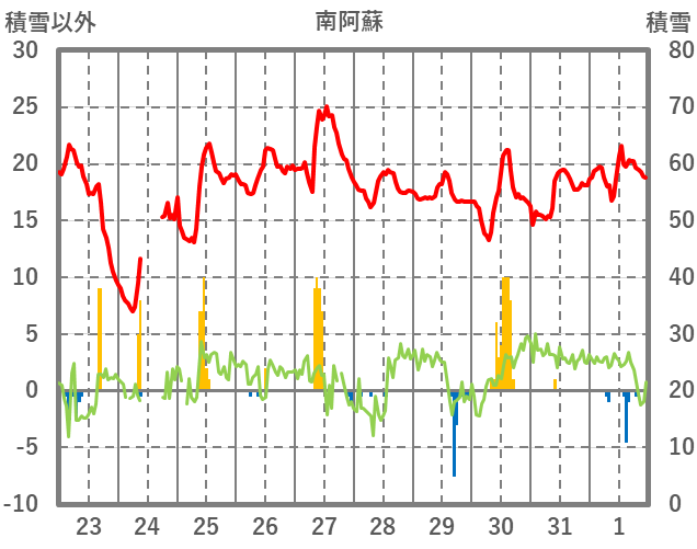 | 日 | 時 | 気温 | 降水 | 風向/風速 | 日照 | 積雪 | 降雪 |