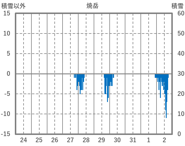 | 日 | 時 | 気温 | 降水 | 風向/風速 | 日照 | 積雪 | 降雪 |