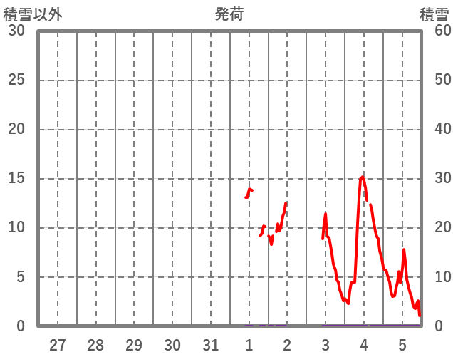| 日 | 時 | 気温 | 降水 | 風向/風速 | 日照 | 積雪 | 降雪 |