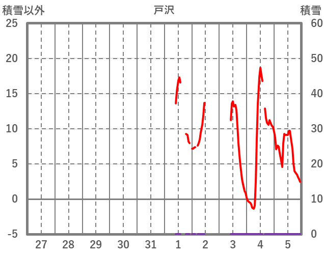 | 日 | 時 | 気温 | 降水 | 風向/風速 | 日照 | 積雪 | 降雪 |