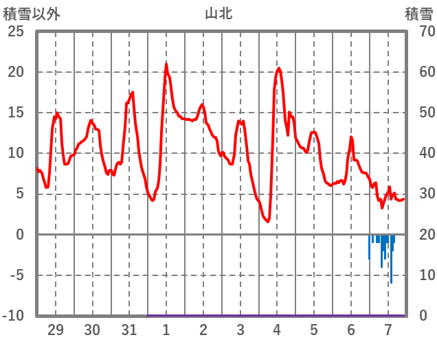 | 日 | 時 | 気温 | 降水 | 風向/風速 | 日照 | 積雪 | 降雪 |