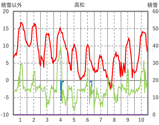 | 日 | 時 | 気温 | 降水 | 風向/風速 | 日照 | 積雪 | 降雪 |