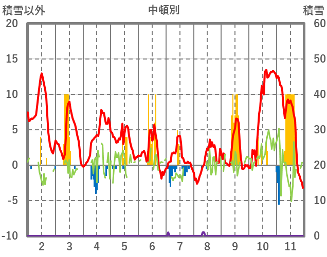 | 日 | 時 | 気温 | 降水 | 風向/風速 | 日照 | 積雪 | 降雪 |