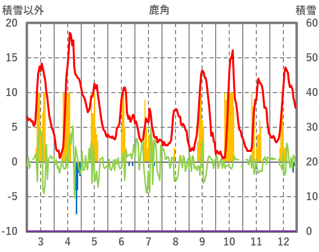 | 日 | 時 | 気温 | 降水 | 風向/風速 | 日照 | 積雪 | 降雪 |