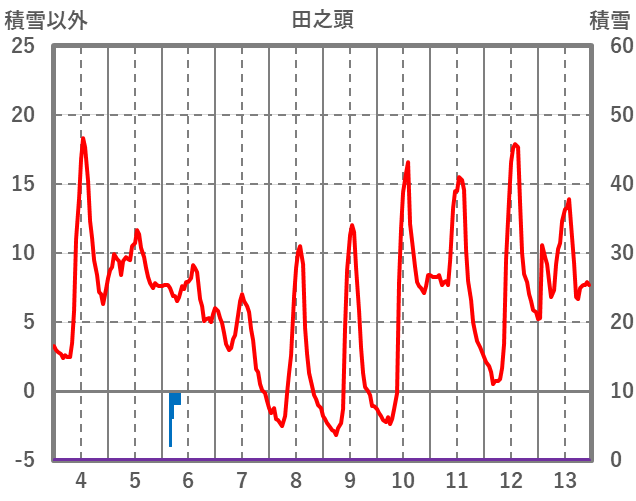 | 日 | 時 | 気温 | 降水 | 風向/風速 | 日照 | 積雪 | 降雪 |