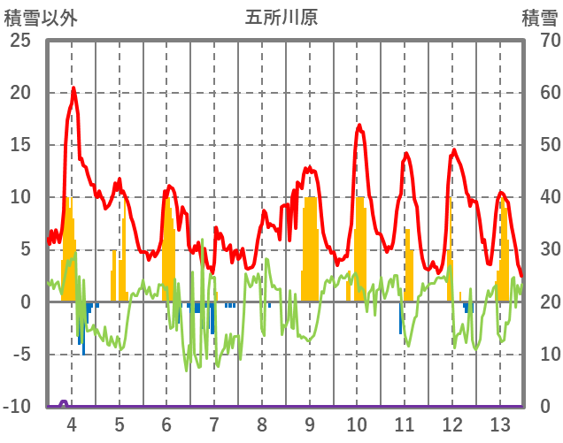 | 日 | 時 | 気温 | 降水 | 風向/風速 | 日照 | 積雪 | 降雪 |