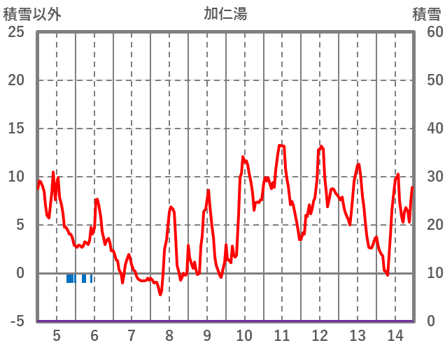 | 日 | 時 | 気温 | 降水 | 風向/風速 | 日照 | 積雪 | 降雪 |
