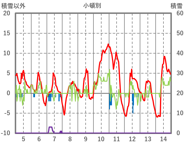 | 日 | 時 | 気温 | 降水 | 風向/風速 | 日照 | 積雪 | 降雪 |