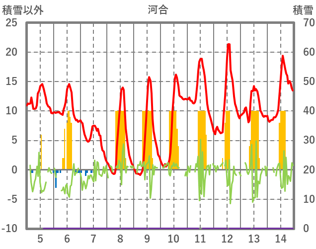 | 日 | 時 | 気温 | 降水 | 風向/風速 | 日照 | 積雪 | 降雪 |