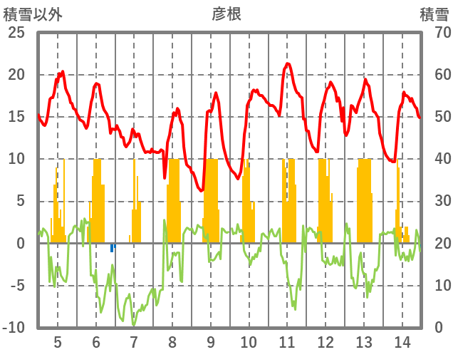 | 日 | 時 | 気温 | 降水 | 風向/風速 | 日照 | 積雪 | 降雪 |