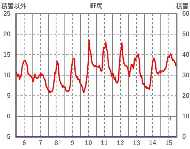 | 日 | 時 | 気温 | 降水 | 風向/風速 | 日照 | 積雪 | 降雪 |