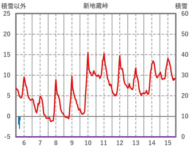 | 日 | 時 | 気温 | 降水 | 風向/風速 | 日照 | 積雪 | 降雪 |