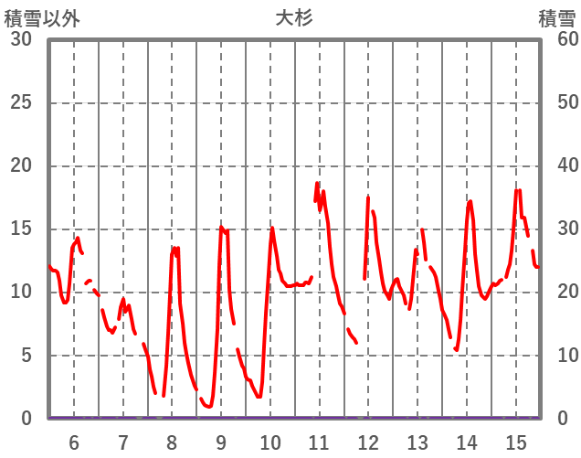 | 日 | 時 | 気温 | 降水 | 風向/風速 | 日照 | 積雪 | 降雪 |