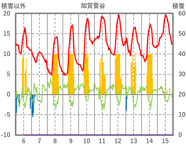 | 日 | 時 | 気温 | 降水 | 風向/風速 | 日照 | 積雪 | 降雪 |