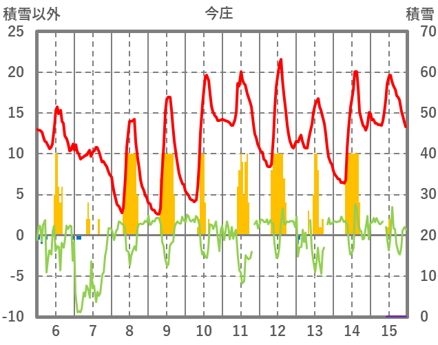 | 日 | 時 | 気温 | 降水 | 風向/風速 | 日照 | 積雪 | 降雪 |