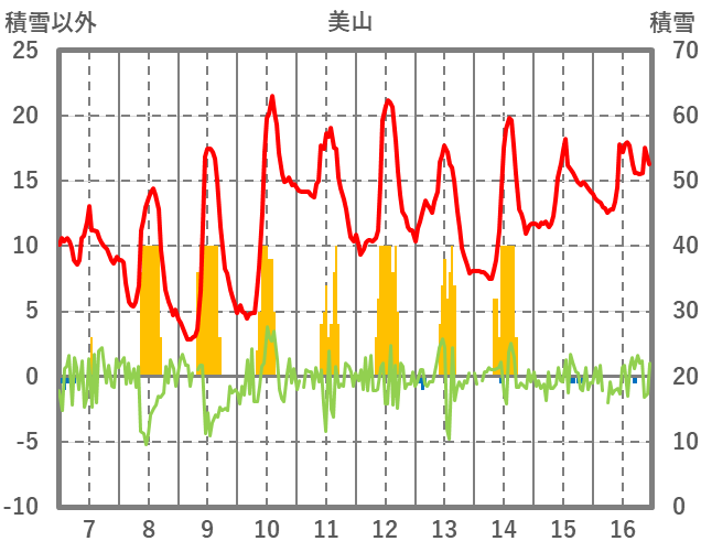 | 日 | 時 | 気温 | 降水 | 風向/風速 | 日照 | 積雪 | 降雪 |