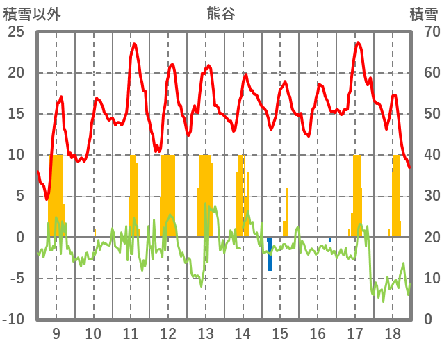 | 日 | 時 | 気温 | 降水 | 風向/風速 | 日照 | 積雪 | 降雪 |