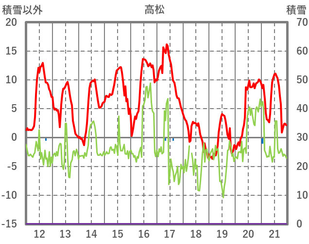 | 日 | 時 | 気温 | 降水 | 風向/風速 | 日照 | 積雪 | 降雪 |