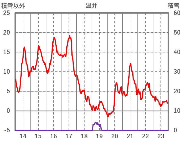 | 日 | 時 | 気温 | 降水 | 風向/風速 | 日照 | 積雪 | 降雪 |