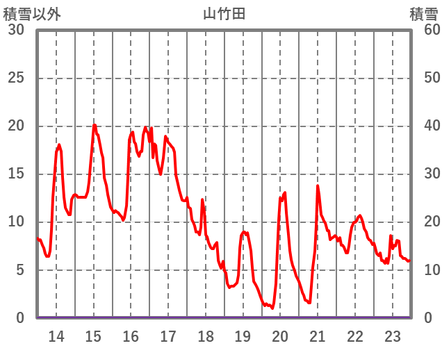 | 日 | 時 | 気温 | 降水 | 風向/風速 | 日照 | 積雪 | 降雪 |