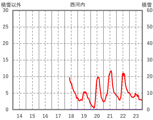 | 日 | 時 | 気温 | 降水 | 風向/風速 | 日照 | 積雪 | 降雪 |