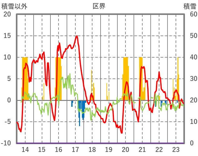 | 日 | 時 | 気温 | 降水 | 風向/風速 | 日照 | 積雪 | 降雪 |