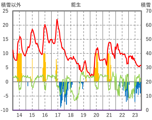 | 日 | 時 | 気温 | 降水 | 風向/風速 | 日照 | 積雪 | 降雪 |