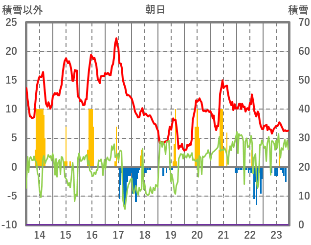 | 日 | 時 | 気温 | 降水 | 風向/風速 | 日照 | 積雪 | 降雪 |