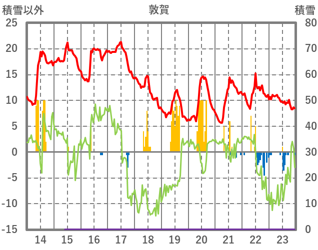 | 日 | 時 | 気温 | 降水 | 風向/風速 | 日照 | 積雪 | 降雪 |