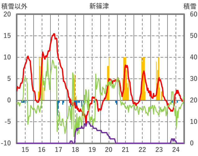 | 日 | 時 | 気温 | 降水 | 風向/風速 | 日照 | 積雪 | 降雪 |