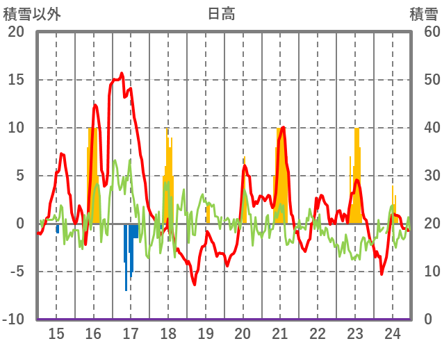 | 日 | 時 | 気温 | 降水 | 風向/風速 | 日照 | 積雪 | 降雪 |