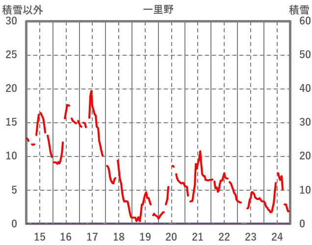 | 日 | 時 | 気温 | 降水 | 風向/風速 | 日照 | 積雪 | 降雪 |