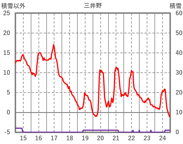 | 日 | 時 | 気温 | 降水 | 風向/風速 | 日照 | 積雪 | 降雪 |