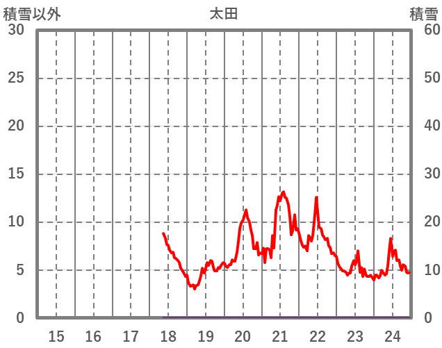 | 日 | 時 | 気温 | 降水 | 風向/風速 | 日照 | 積雪 | 降雪 |